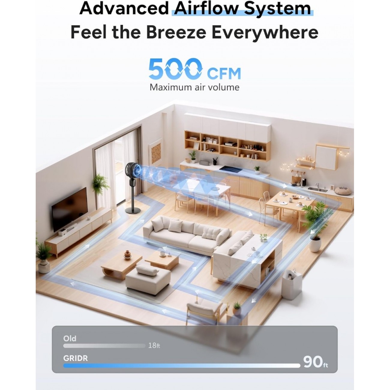 - One Fan, All-year Comfort: The pedestal fan performs beyond expectations. You can pair it with a space heater to warm your room efficiently in winter, DC to cool fast on summer, or with your humidifier to spread moisture evenly, all while saving energy.