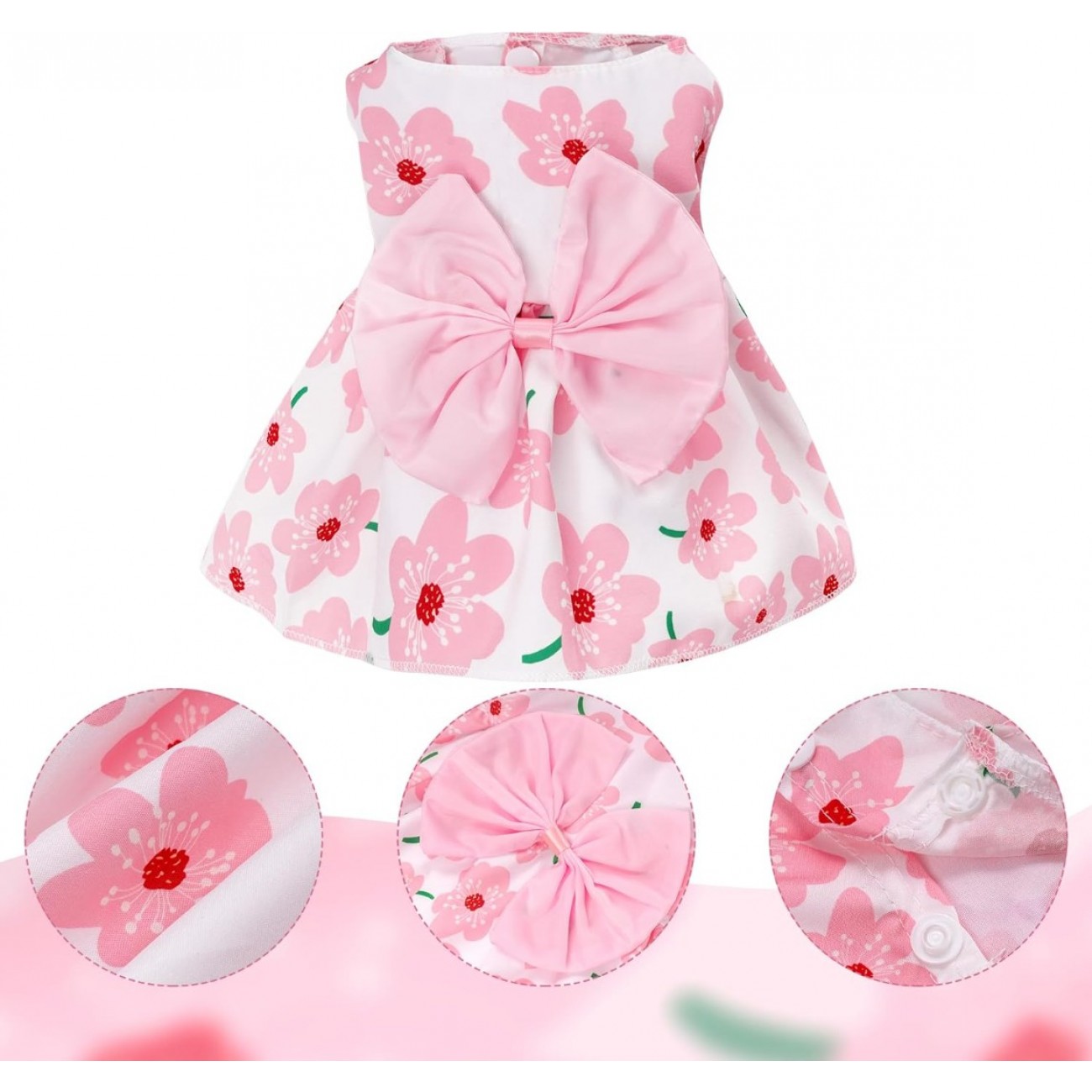 • Colour: Fresh pink is the main colour, giving people a sense of tranquility and coolness. The dress is also embellished with a flower pattern, like a summer garden blooming flowers, full of life and vitality, to create a sweet and lovely image for the dog